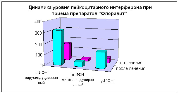 Успех данной методики не удивителен, т.к. "Флоравит Э" восстанавливает уровень своих собственных не только α -интерферонов, но и γ -интерферонов: