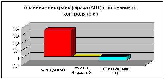 Во Всероссийском научном центре по безопасности биологически активных веществ проведены исследования этих препаратов [4]. Исследовалась способность БАД "Флоравит ЦП" (испытания проходил под рабочим названием "Флоравит-HSV") и "Флоравит-Э" нейтрализации токсического гепатита. В качестве токсина было выбрано наиболее распространенное токсическое соединение - этанол, потребление которого на душу населения увеличивается с каждым годом.