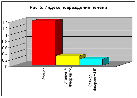 Очевидно, что все испытуемые препараты "Флоравит" на основе экстрактов гриба Fusarium sambucinum в той или иной мере защищают печень от разрушительного действия этанола, рис 5.