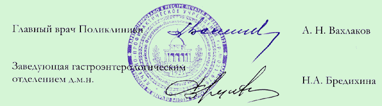 - заведующая гастроэнтерологическим отделением, докт.мед.наук Бредихина Н.А.;